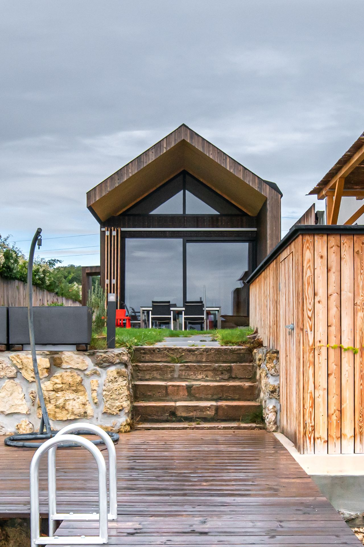 The project entails the construction of a stunning private weekend home located in the scenic region of Burgenland, Austria. The architectural design showcases a unique blend of traditional and contemporary elements, featuring a pointed roof and expansive window fronts.