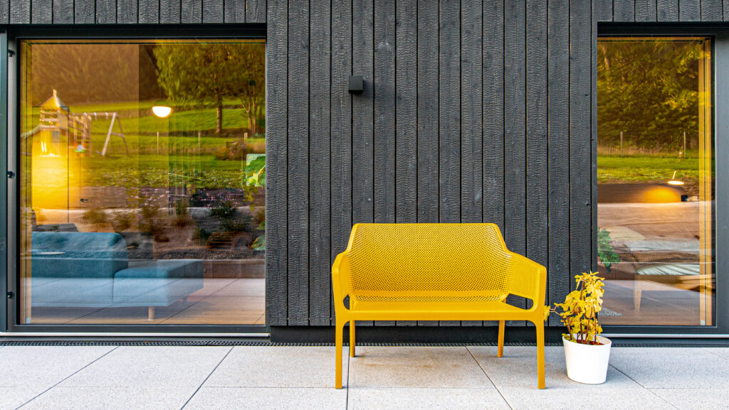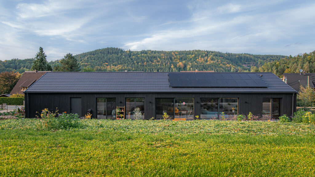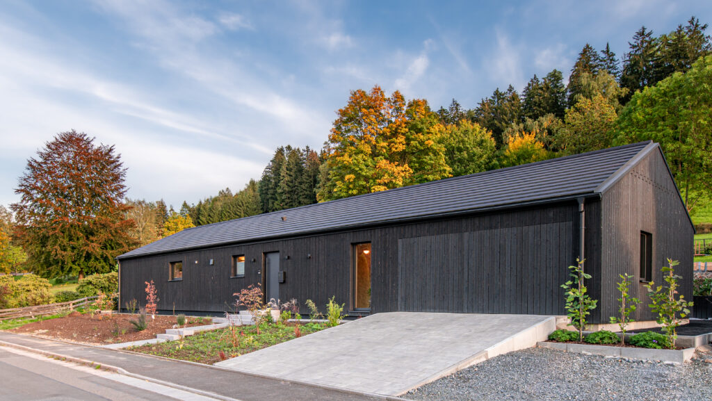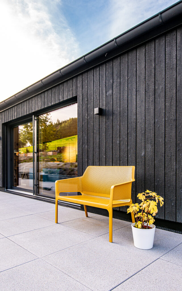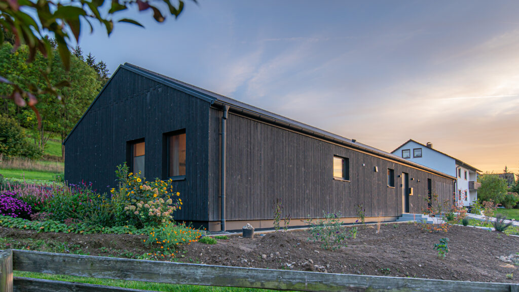 Our Suyaki shou sugi ban siding, which was sought and found in the search for a completely natural as well as striking cladding material, gives the house a special expression.