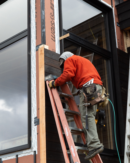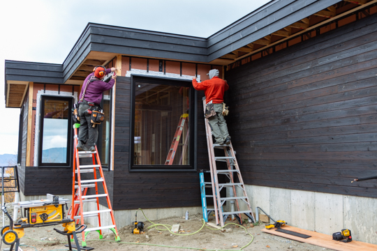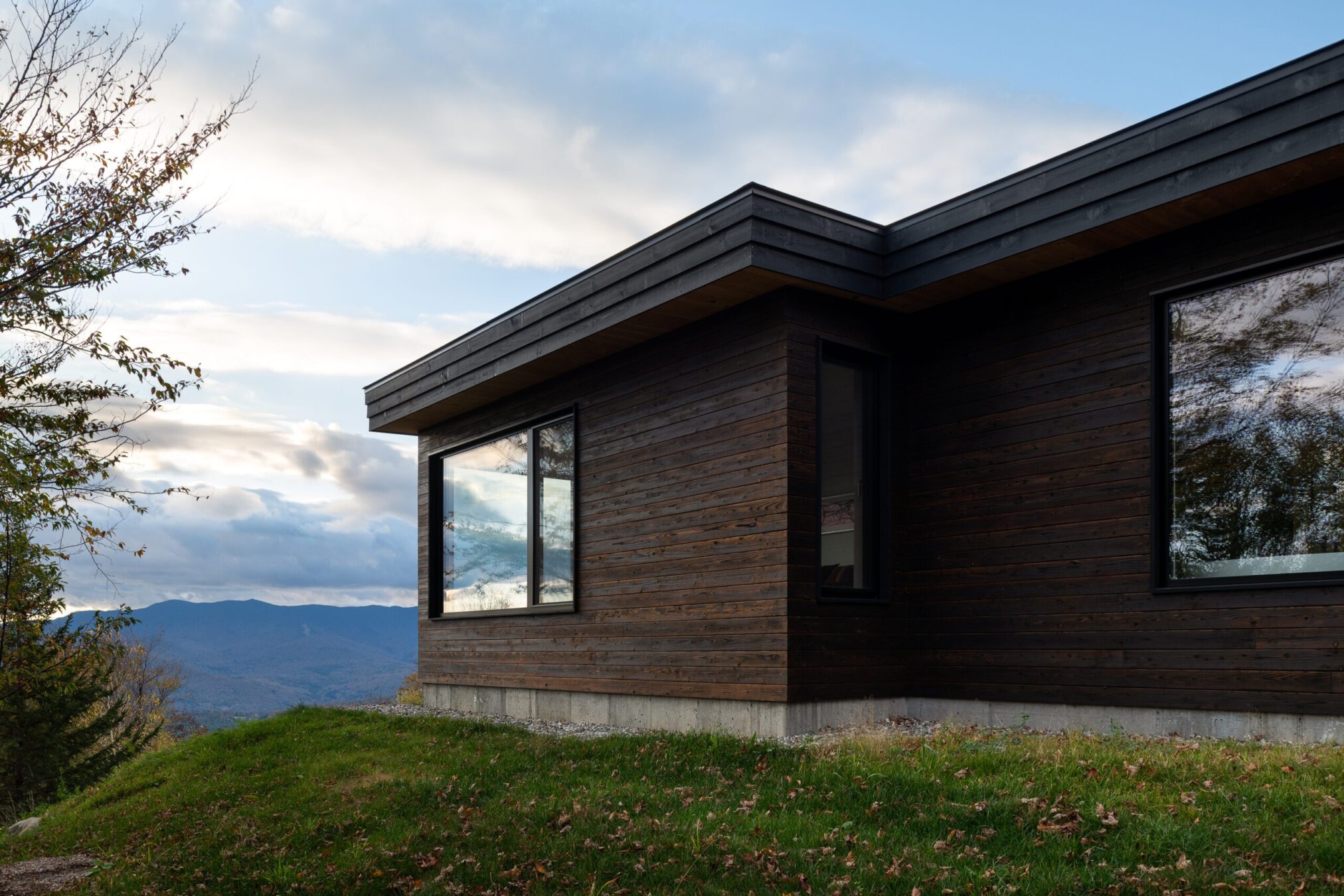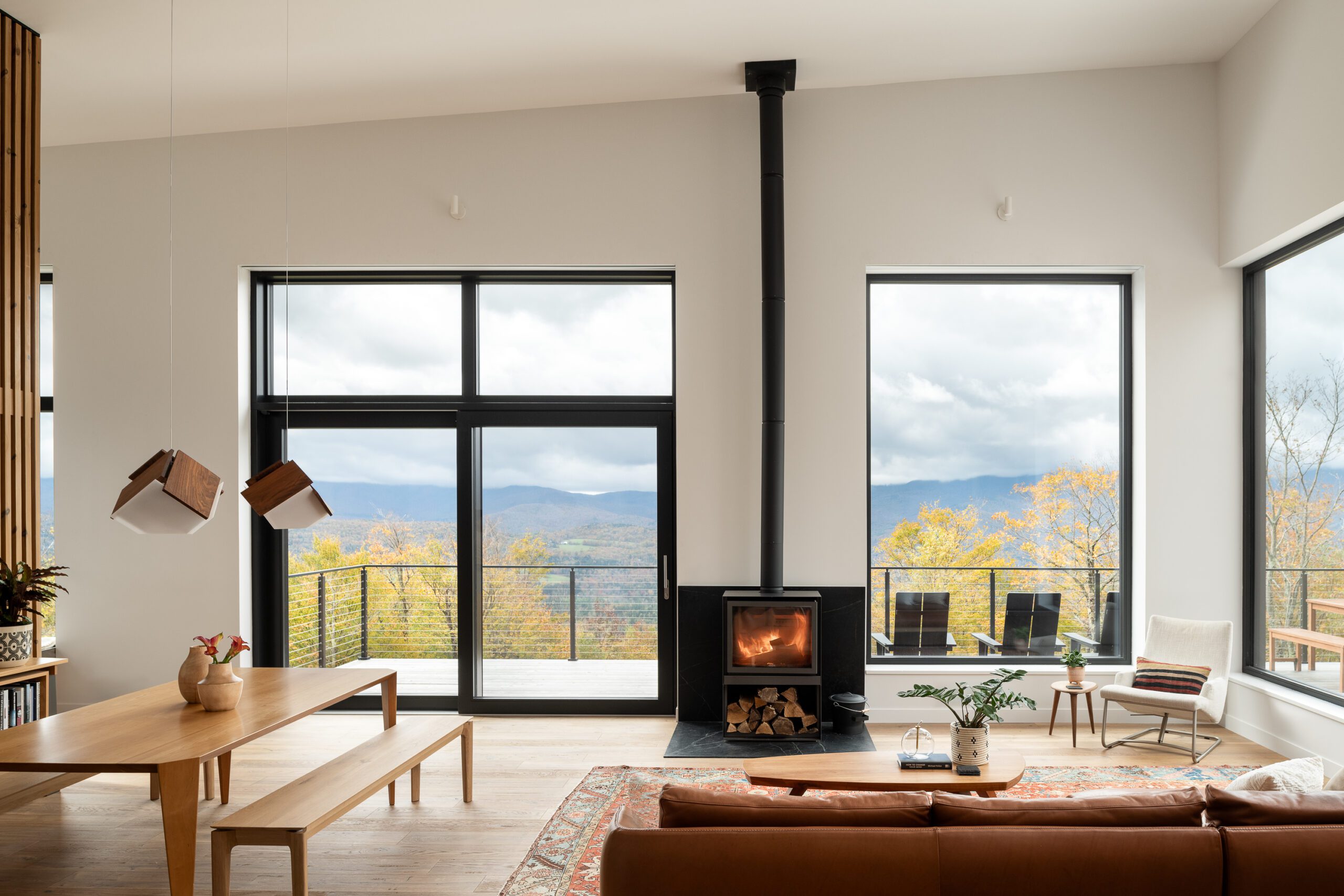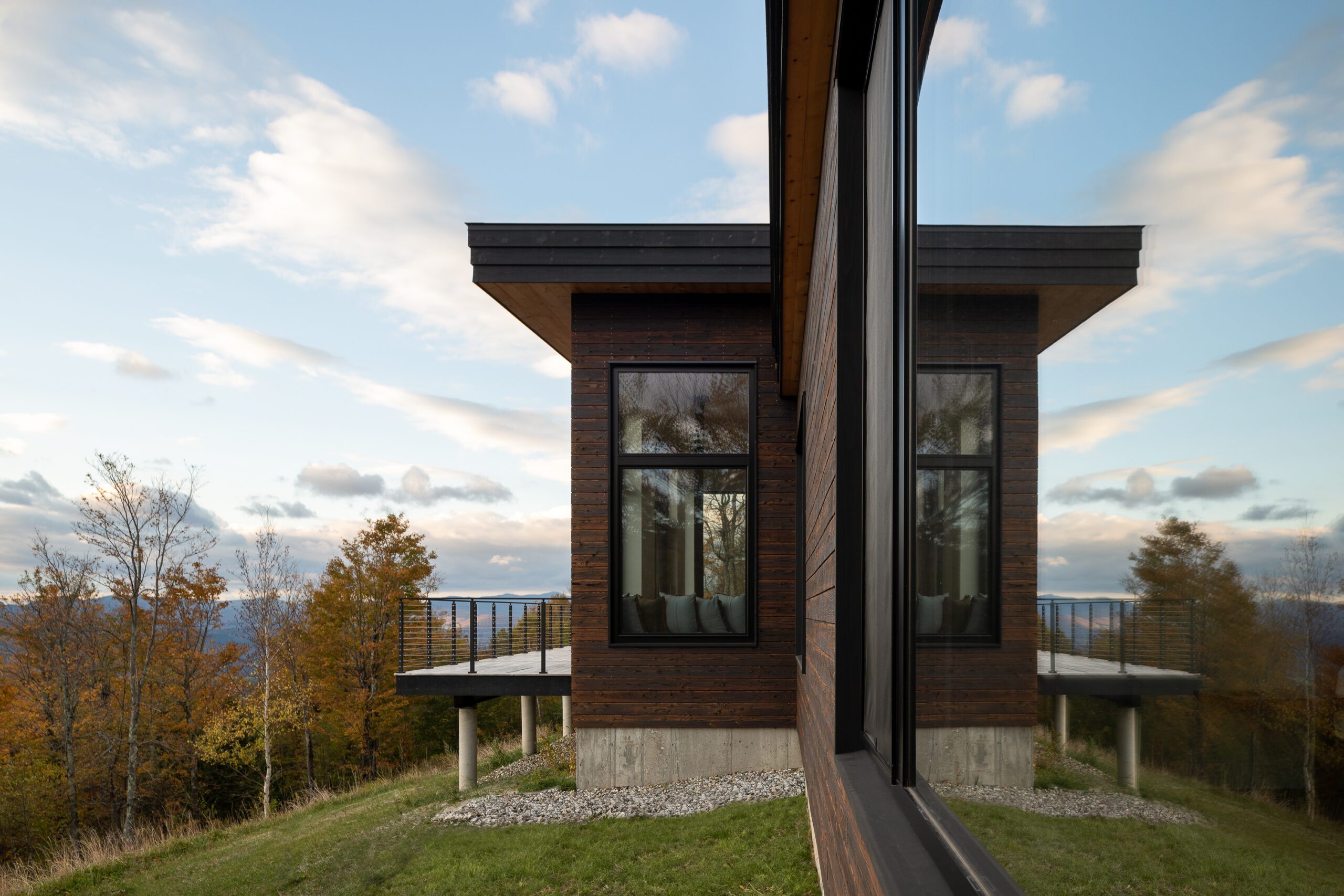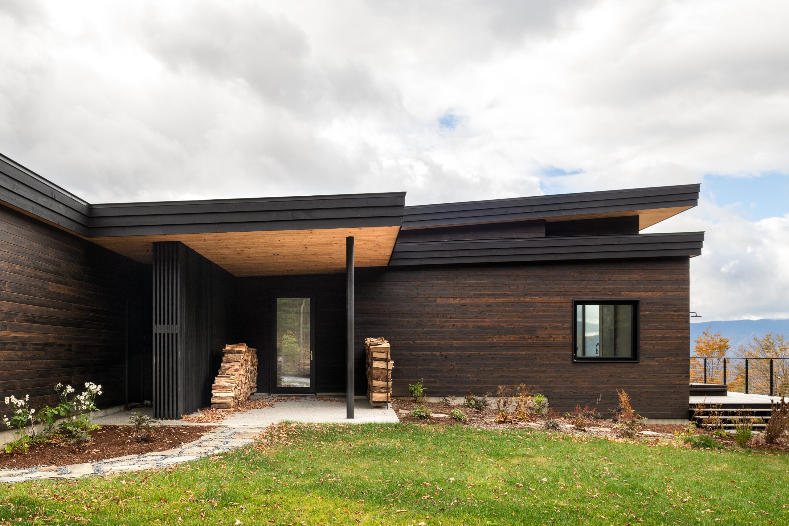 The Linseed Amber finish on the GendaiĀ® siding helps the home blend into the mountainside, connecting it to the natural environment that surrounds it. The black exterior details and trims are mirrored in the interior material selection and design, giving the home a cohesive, refined feel. The high ceilings and large windows let the home fill with natural light and take in a complete view of the valley and surrounding mountains.