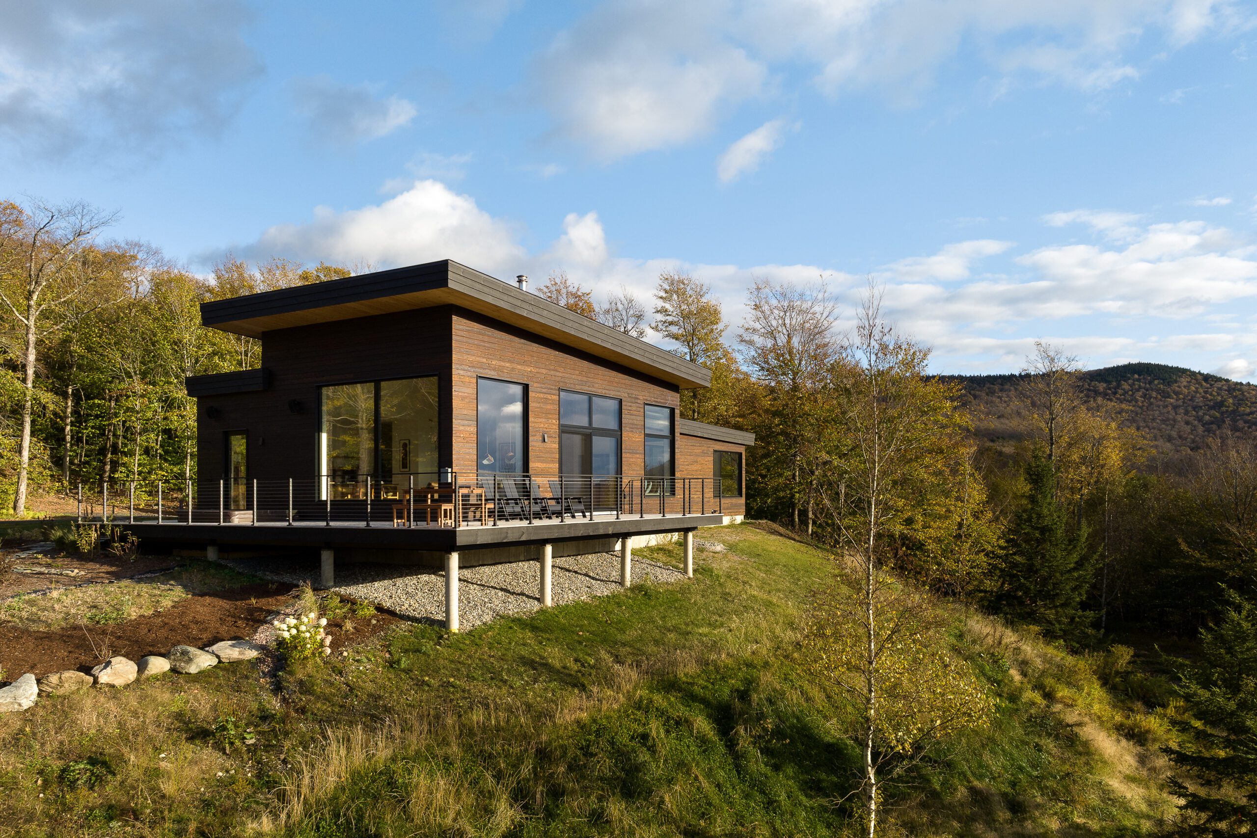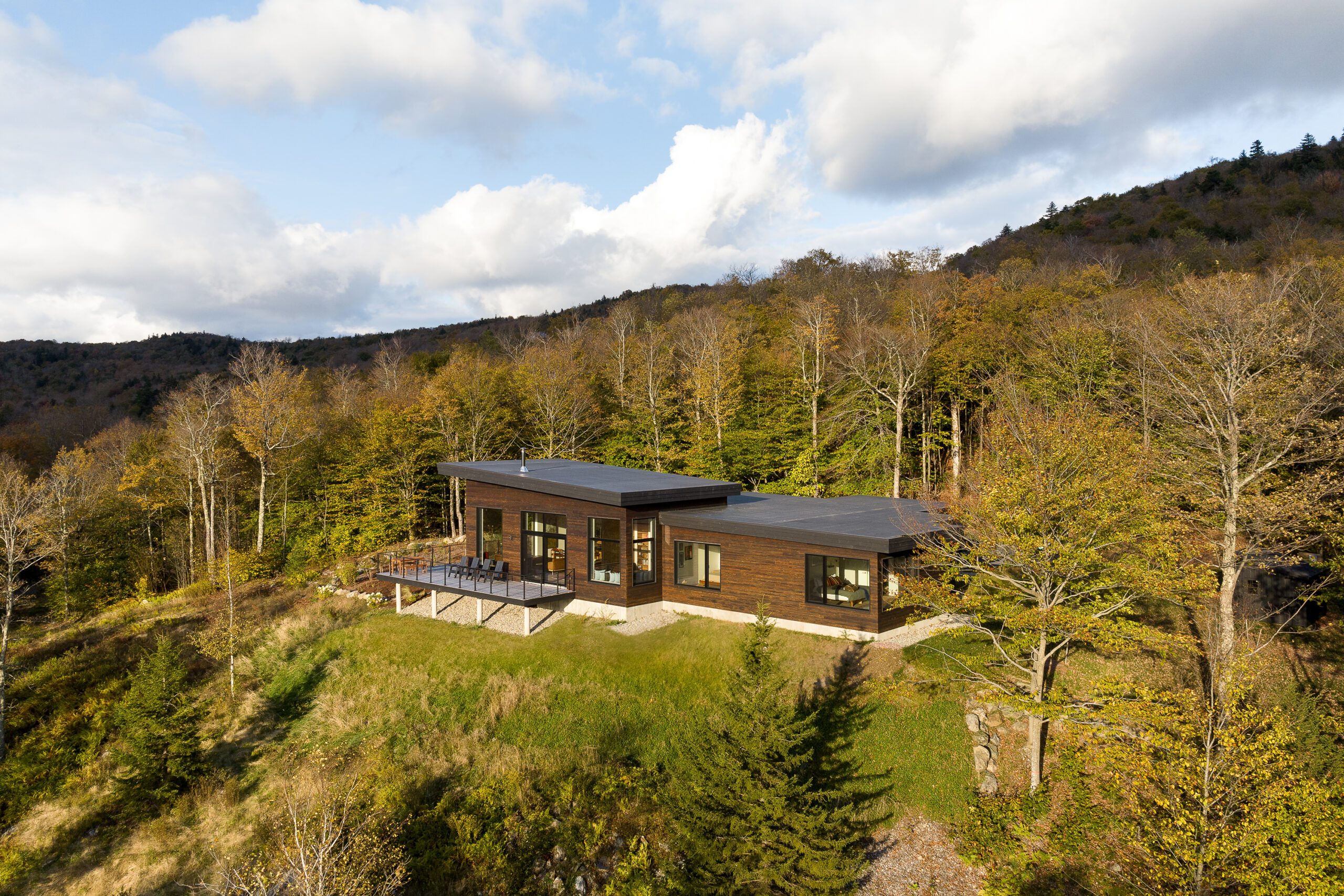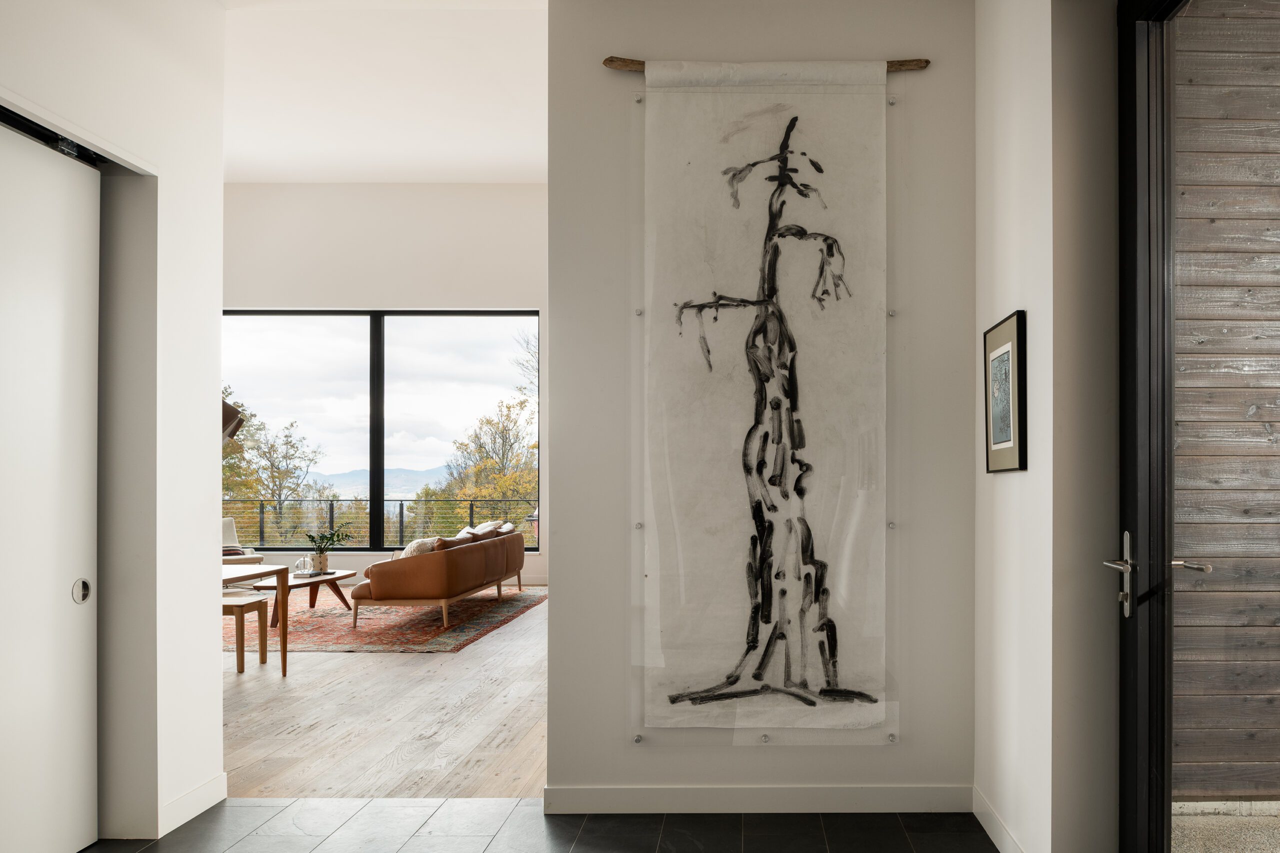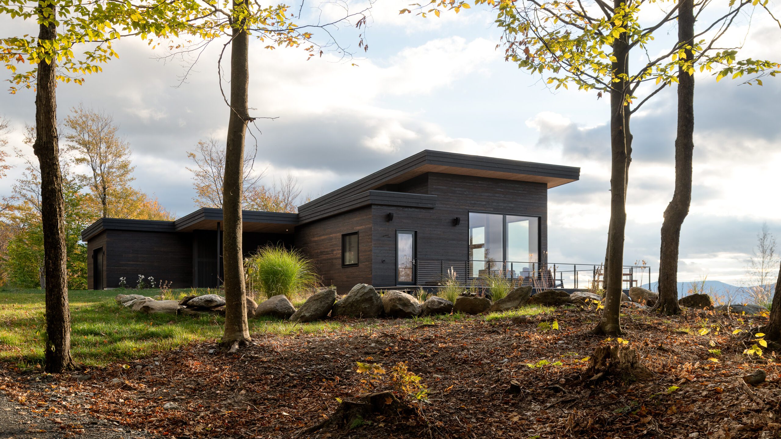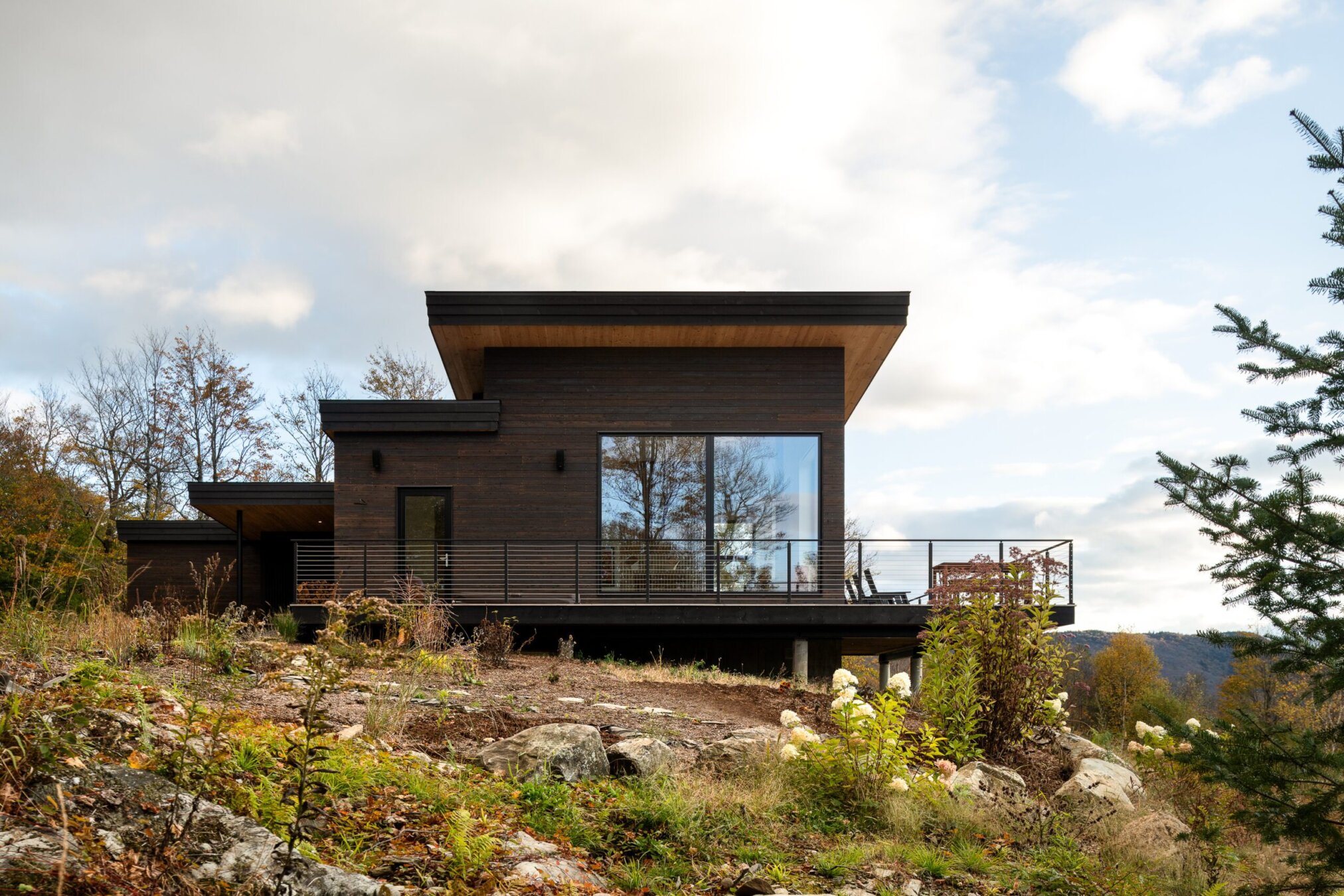 The Linseed Amber finish on the GendaiĀ® siding helps the home blend into the mountainside, connecting it to the natural environment that surrounds it. The black exterior details and trims are mirrored in the interior material selection and design, giving the home a cohesive, refined feel. The high ceilings and large windows let the home fill with natural light and take in a complete view of the valley and surrounding mountains.